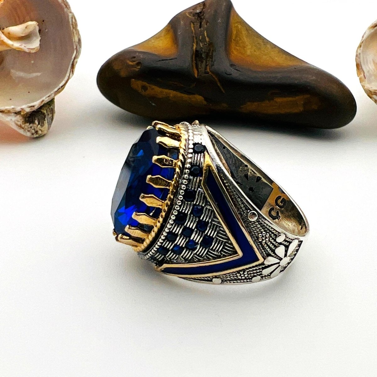 Blauer Saphir Ovalring - Osmanischer Stil Handgefertigtes Sterlingsilber