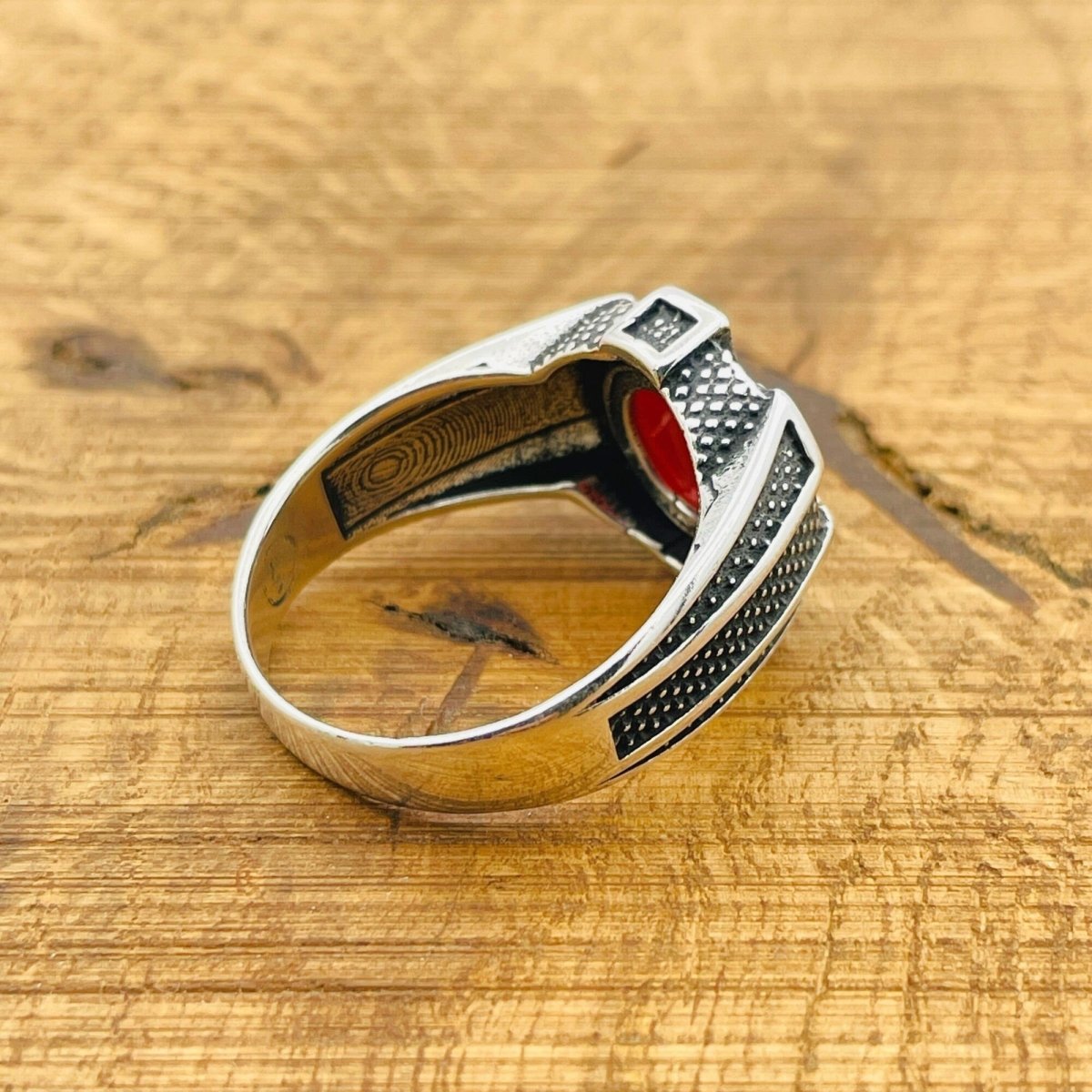 Roter Achat Ovalring - Handgemachter Sterlingsilber Schmuck