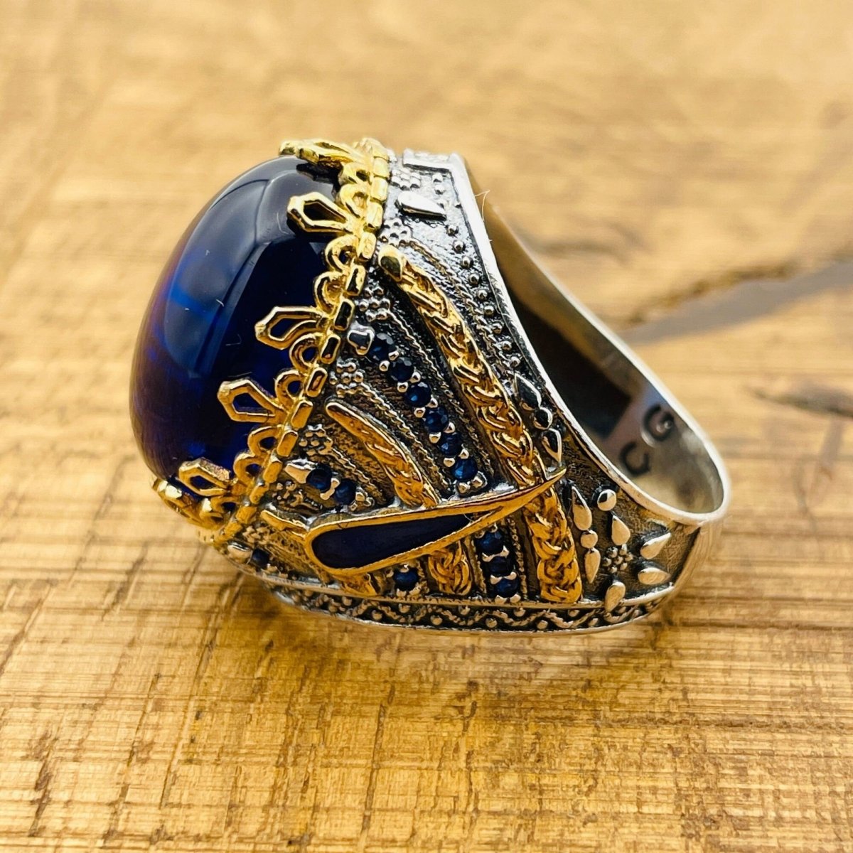 Merkmale:- Handgefertigtes türkisches Design mit einem auffälligen blauen Topasstein.