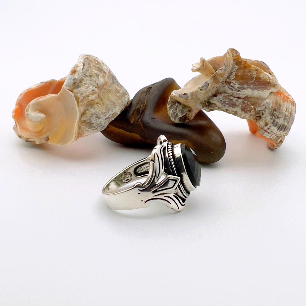 • Handgefertigter türkischer Ring mit einem lebhaften grünen Smaragdstein.