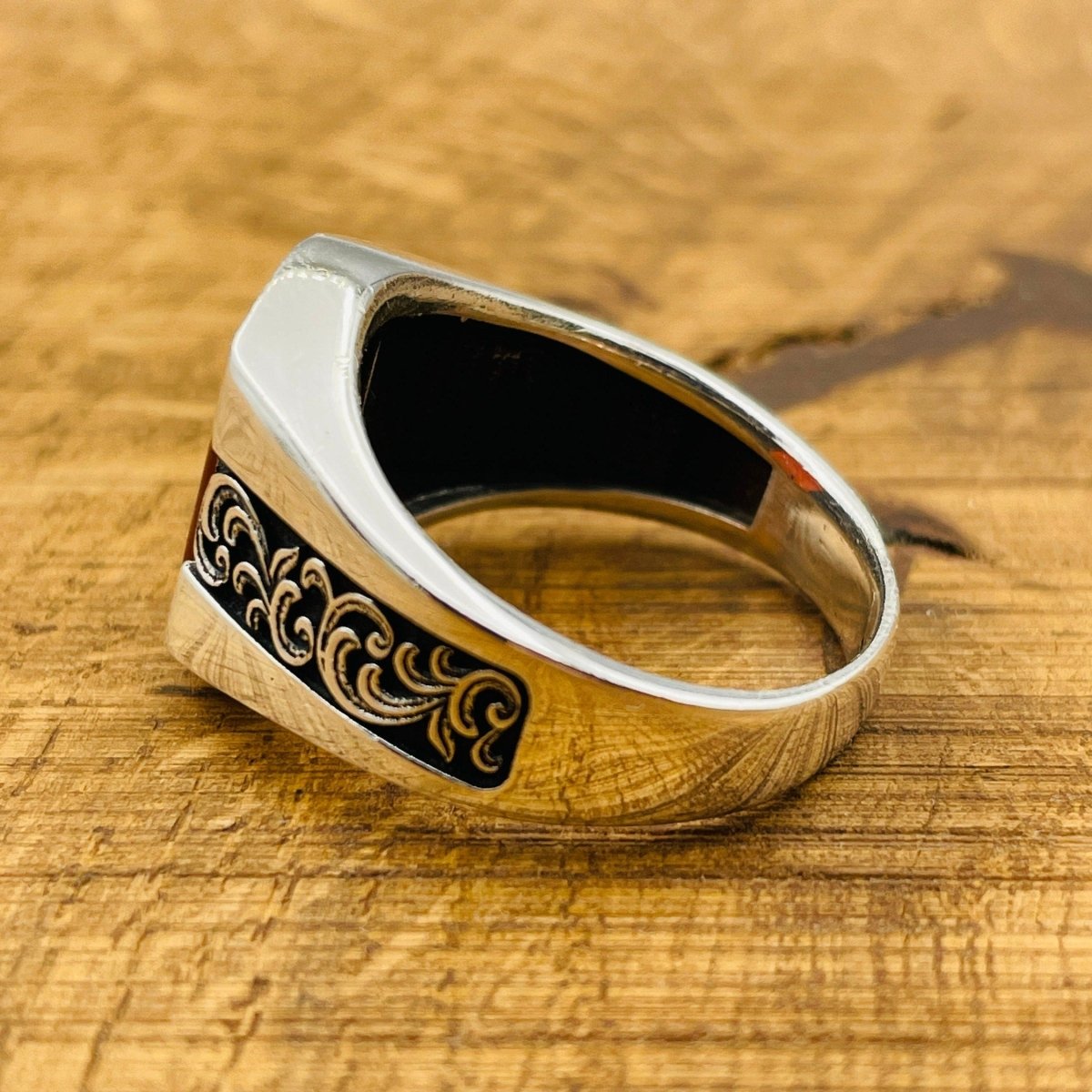 Merkmale:- Handgefertigtes Ottomanisches Design mit einem roten quadratischen Achatstein.