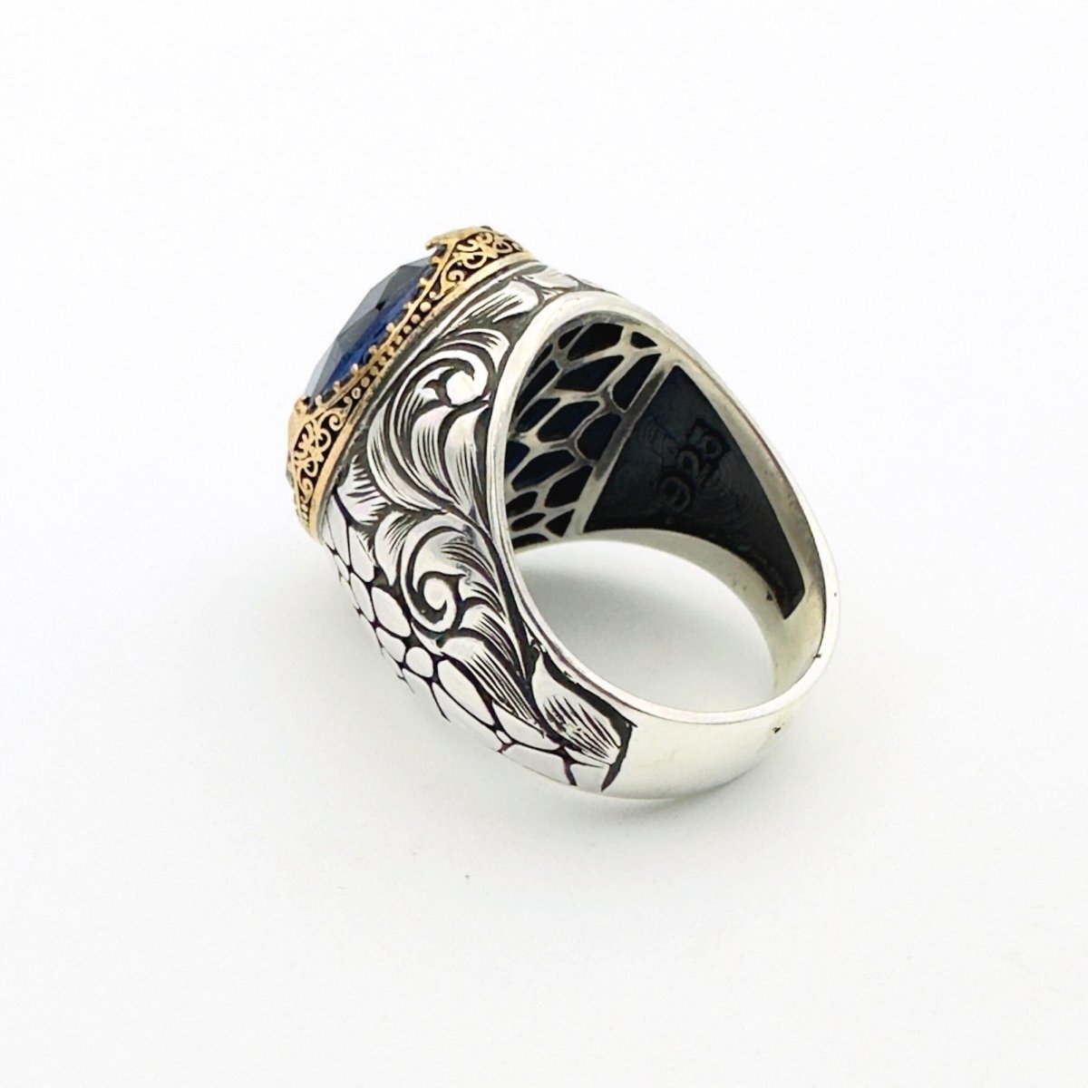 Ovaler blauer Paraiba-Turmalinring - handgefertigter Sterlingsilber