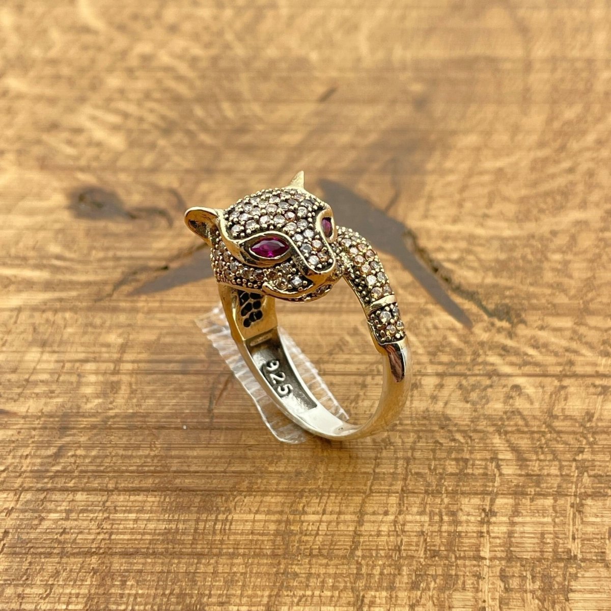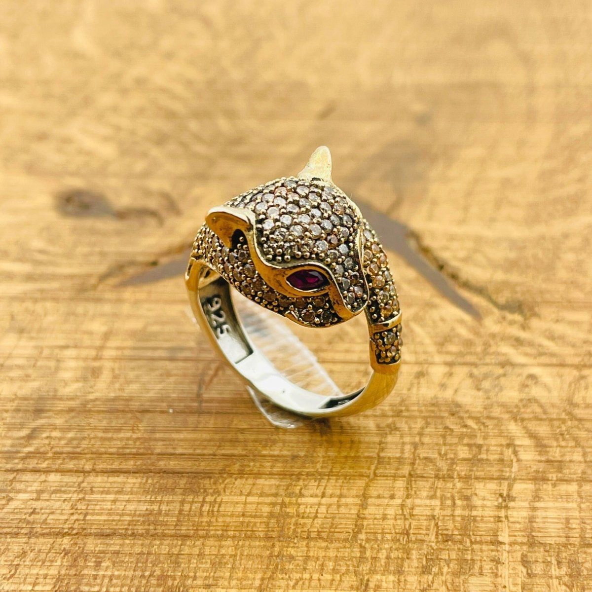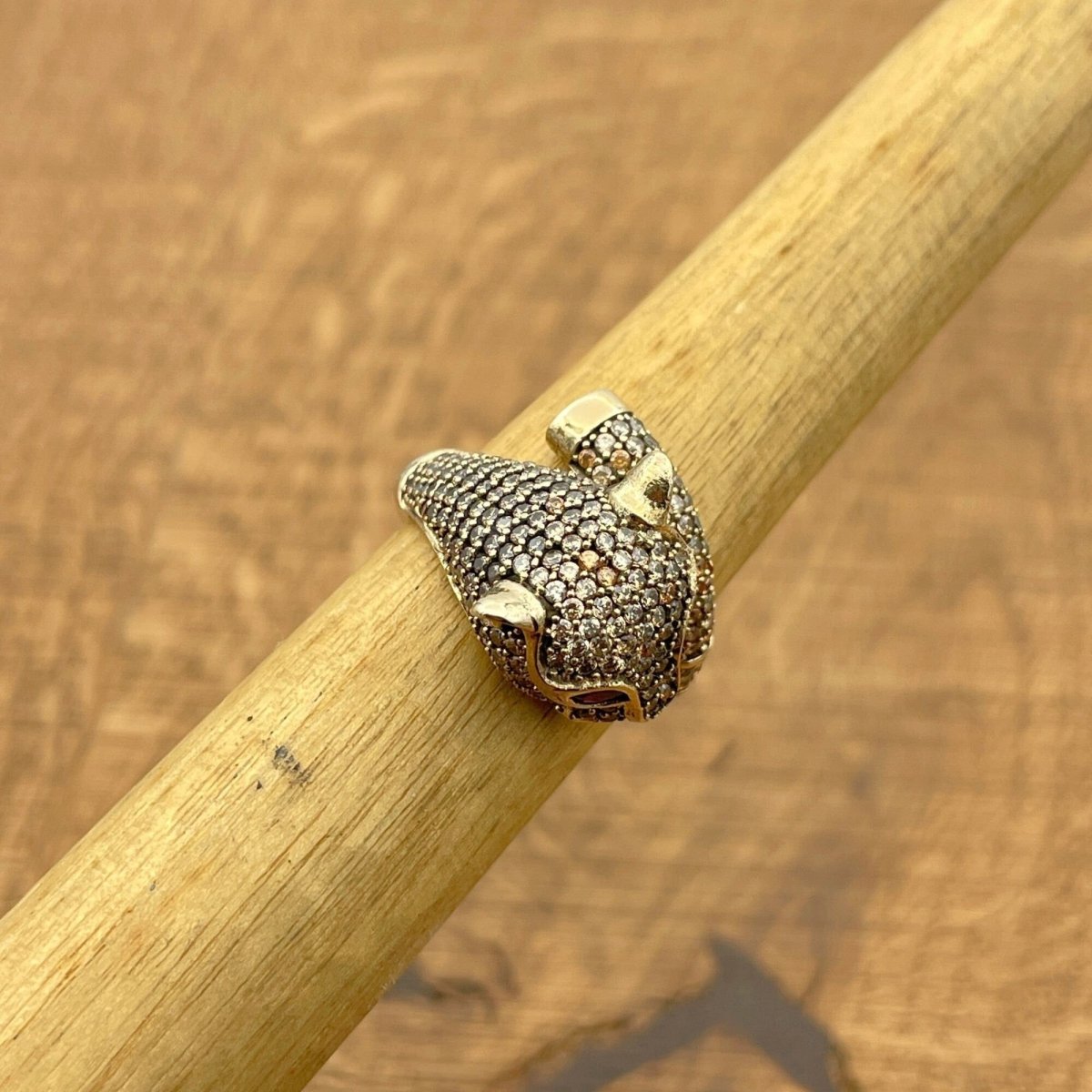 Citrin Gelb Tigerkopf Ring - Handgemachter Sterlingsilber Schmuck