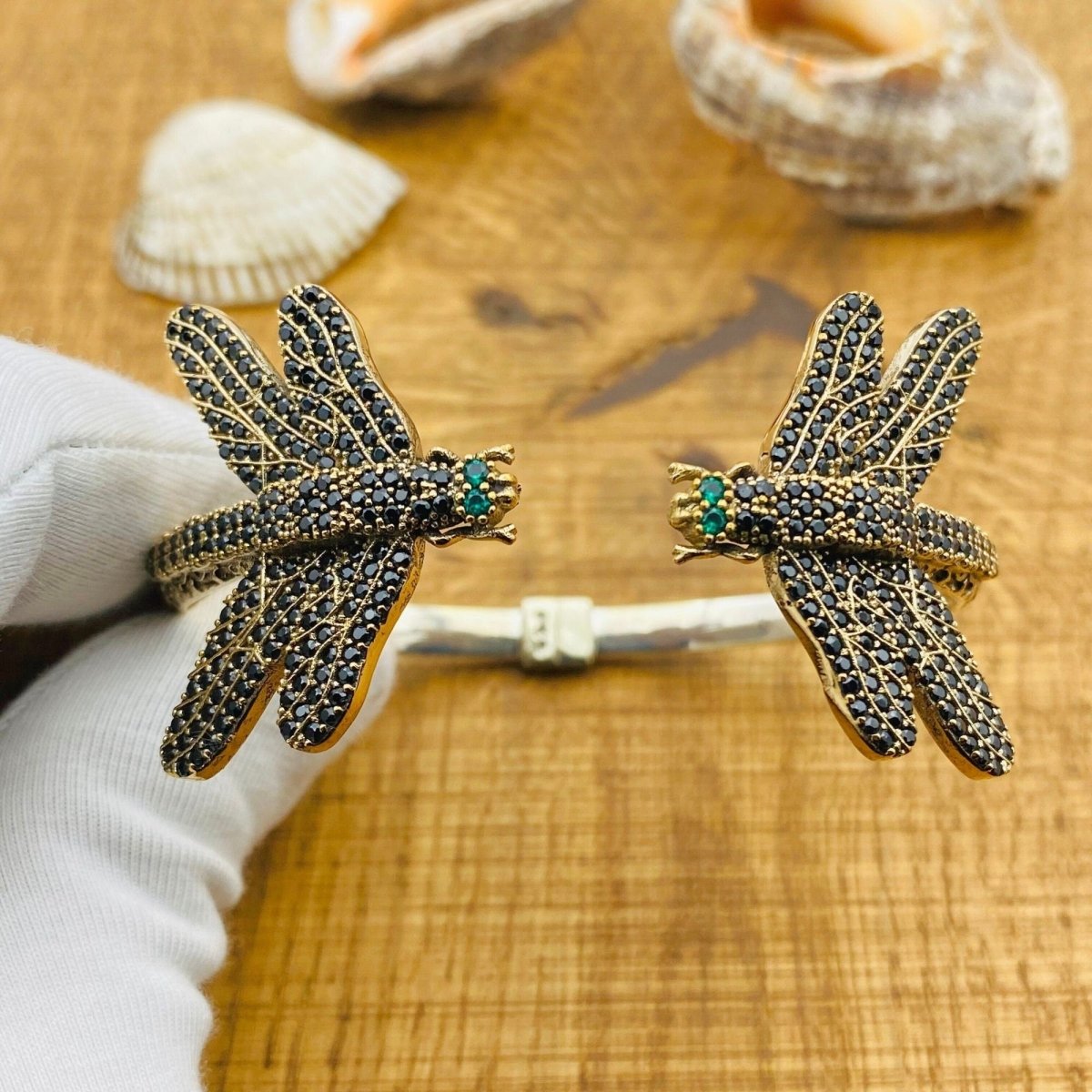 Handgefertigter Türkischer SchmuckDieses elegante schwarze Onyxstein-Armband verfügt über ein Schmetterlingsdesign, gefertigt aus 925 Sterling Silber. Ein perfektes Geschenk für sie.