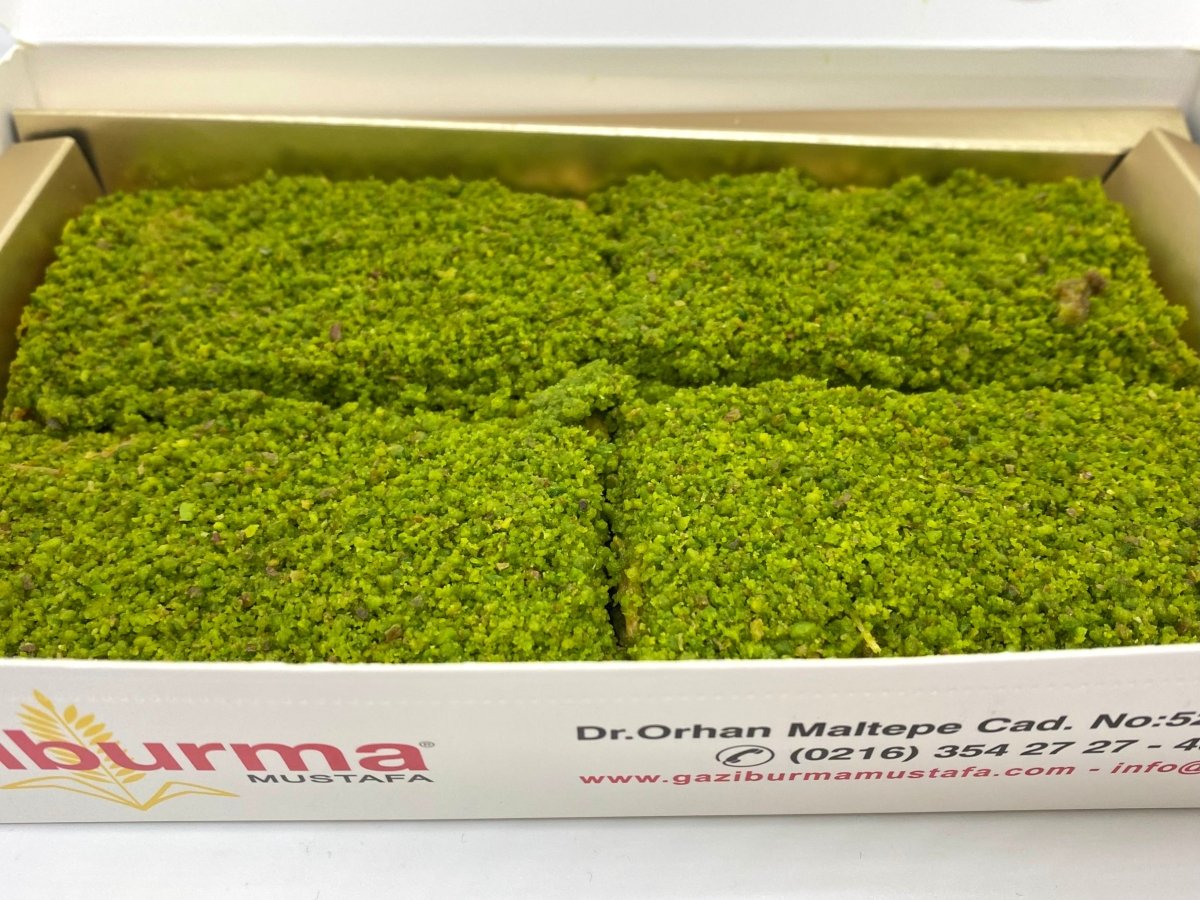 Billuria Kadayif ist ein Geschmack, der einzigartig ist für Gaziburma Mustafa. Es ist eine klassische Kadayif-Baklava, die mit süßem Sirup zubereitet und mit einer großen Menge fein gehackter türkischer Pistazien bedeckt ist, um einen einzigartigen Geschmack zu kreieren.