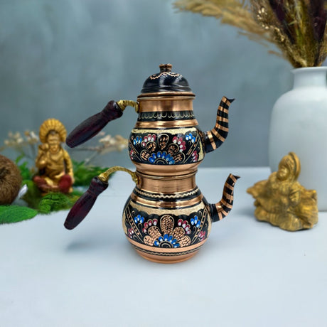 Lavina | Kupferne doppelte türkische Teekanne mit Erzincan-Design
