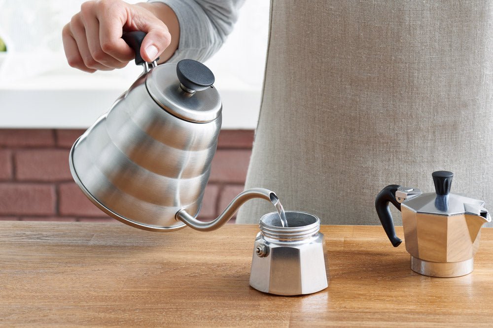 1) Füllen Sie das Trinkwasser bis zum Boden der Moka-Kanne.