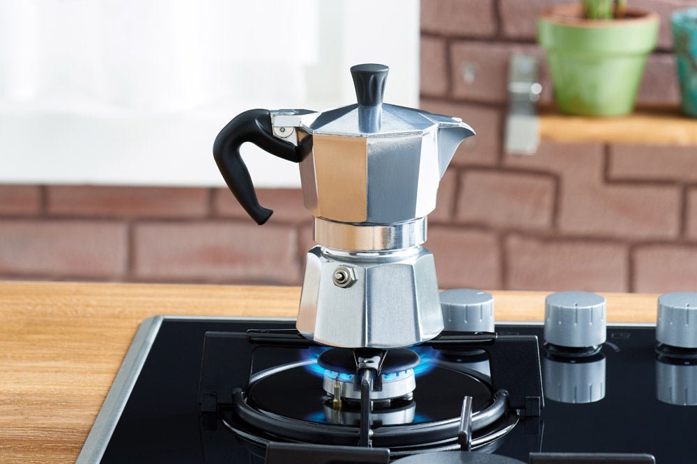 4) Stelle die Moka-Kanne auf den Herd bei mittlerer Hitze.