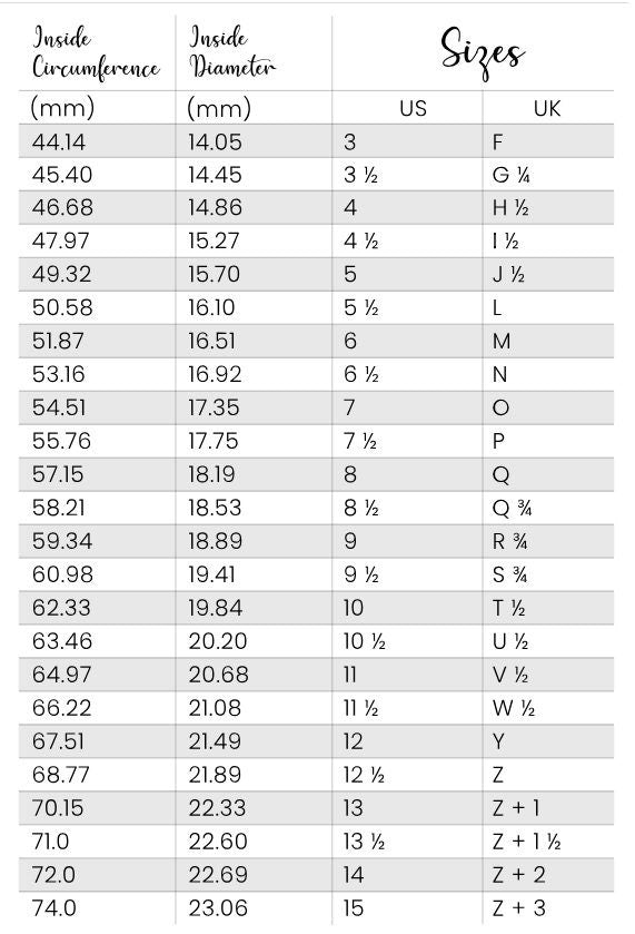 Stein- und Größeninformationen: