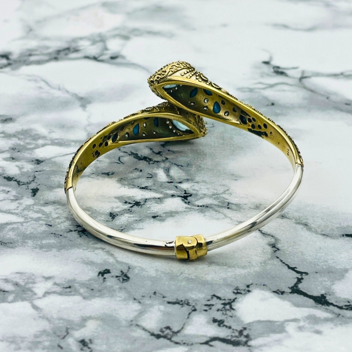 Istanbul Jewelry | Handmade Aquamarine Drop Ottoman Silver Bracelet - TryAladdin