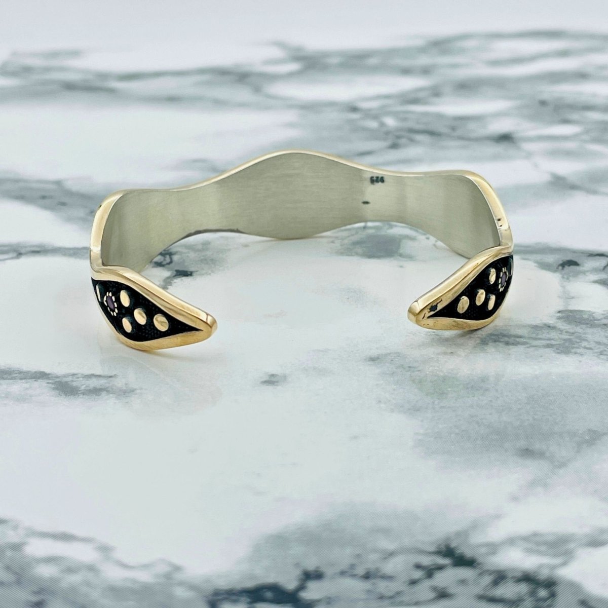 Wir präsentieren unser exquisit gestaltetes Armband aus rotem Rubin und Smaragd, ein wahres Symbol osmanischer Eleganz. Geschmückt mit einem zentralen roten Rubinstein und zarten Akzenten aus Rubin und Smaragd, strahlt dieses atemberaubende Stück Raffinesse aus. Die wellenförmigen Kanten und das filigrane Design, inspiriert vom Stil von Hürrem Sultan, verleihen einen authentischen antiken Look.