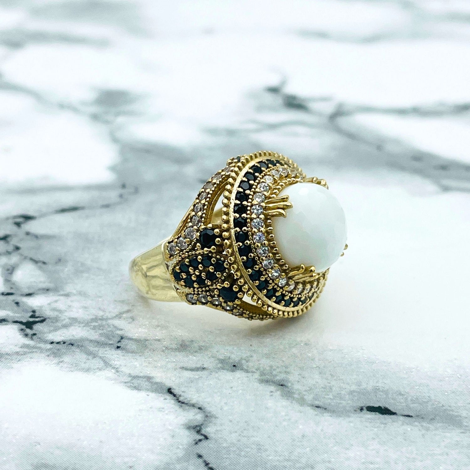 Umarmen Sie Opulenz und Anmut mit unserem fesselnden Achat-Set, das eine sorgfältig gefertigte Halskette, einen Ring, Ohrringe und ein Armband im angesehenen Osmanischen Stil umfasst. Hergestellt aus hochwertigem 925er Sterlingsilber, zeigt jedes Stück die reichen weißen Farbtöne von Achatsteinen und komplizierte osmanisch inspirierte Designs, die Raffinesse und Pracht ausstrahlen.