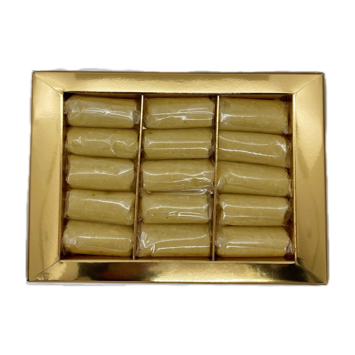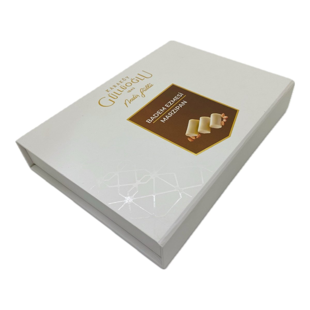 Karakoy Gulluoglu präsentiert seine köstliche Variante von Marzipan. Es wird von Hand aus fein gemahlenen Mandeln, Zucker und Wasser hergestellt und dann gemischt, um die perfekte Textur zu schaffen, bevor es gekocht wird. Marzipan wird oft mit Kuchen, Süßigkeiten oder sogar allein mit einer Tasse Kaffee oder Tee genossen. Was auch immer Ihre Vorliebe ist, machen Sie sich bereit, dass Ihre Geschmacksnerven in ein glückseliges Erwachen mit diesem süßen, nussigen Dessert eintreten.