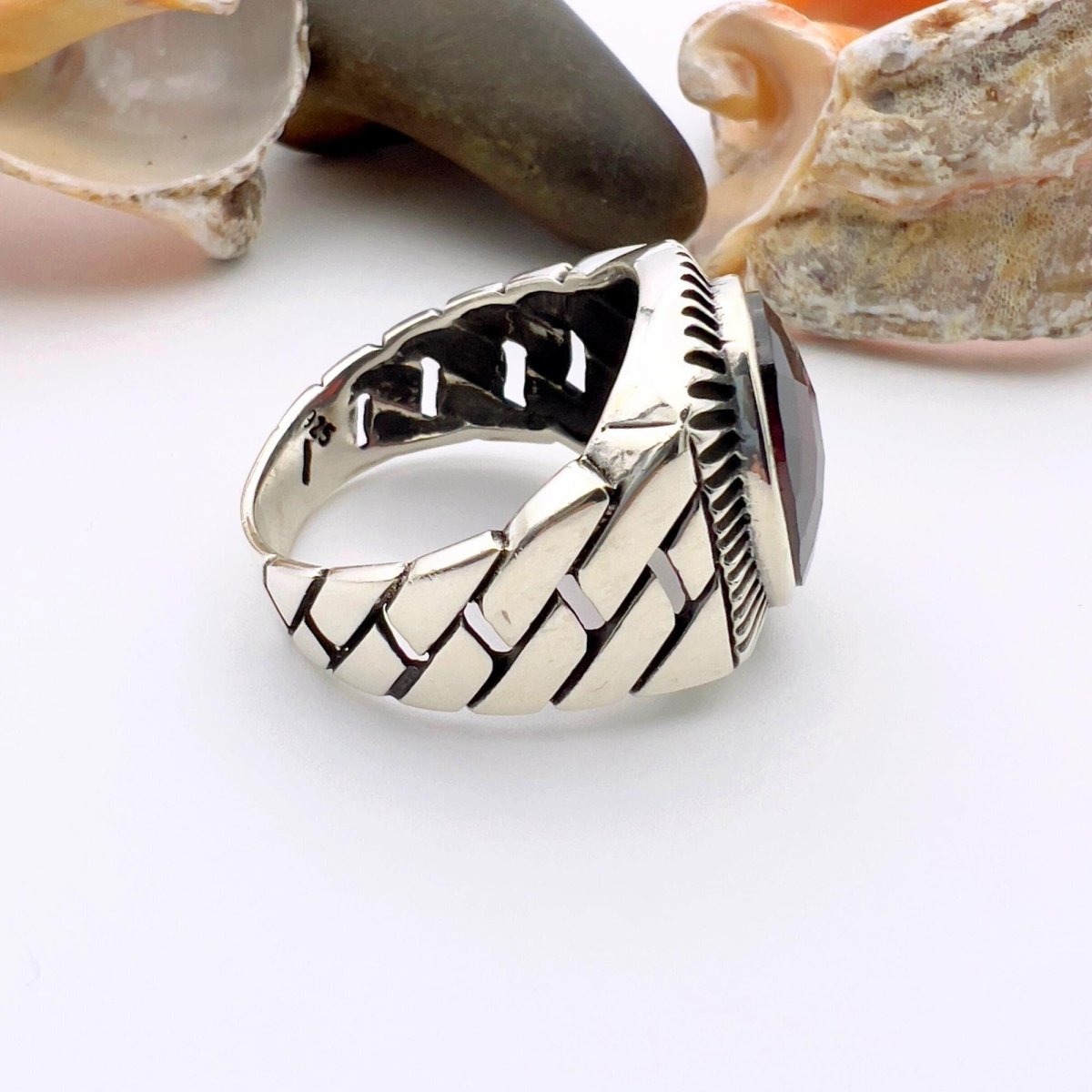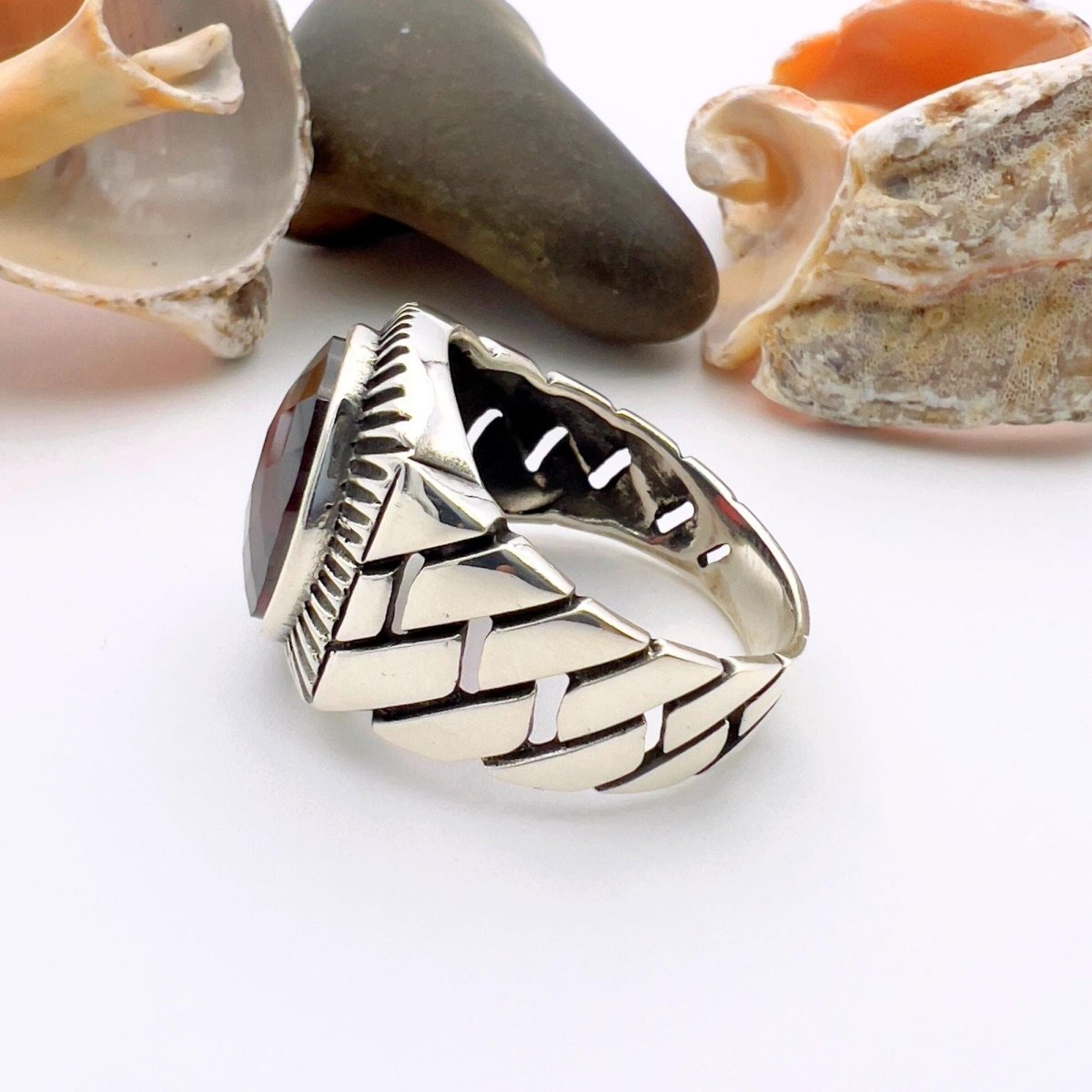 - Handgefertigter türkischer Silberring mit rotem ovalem Rubinstein