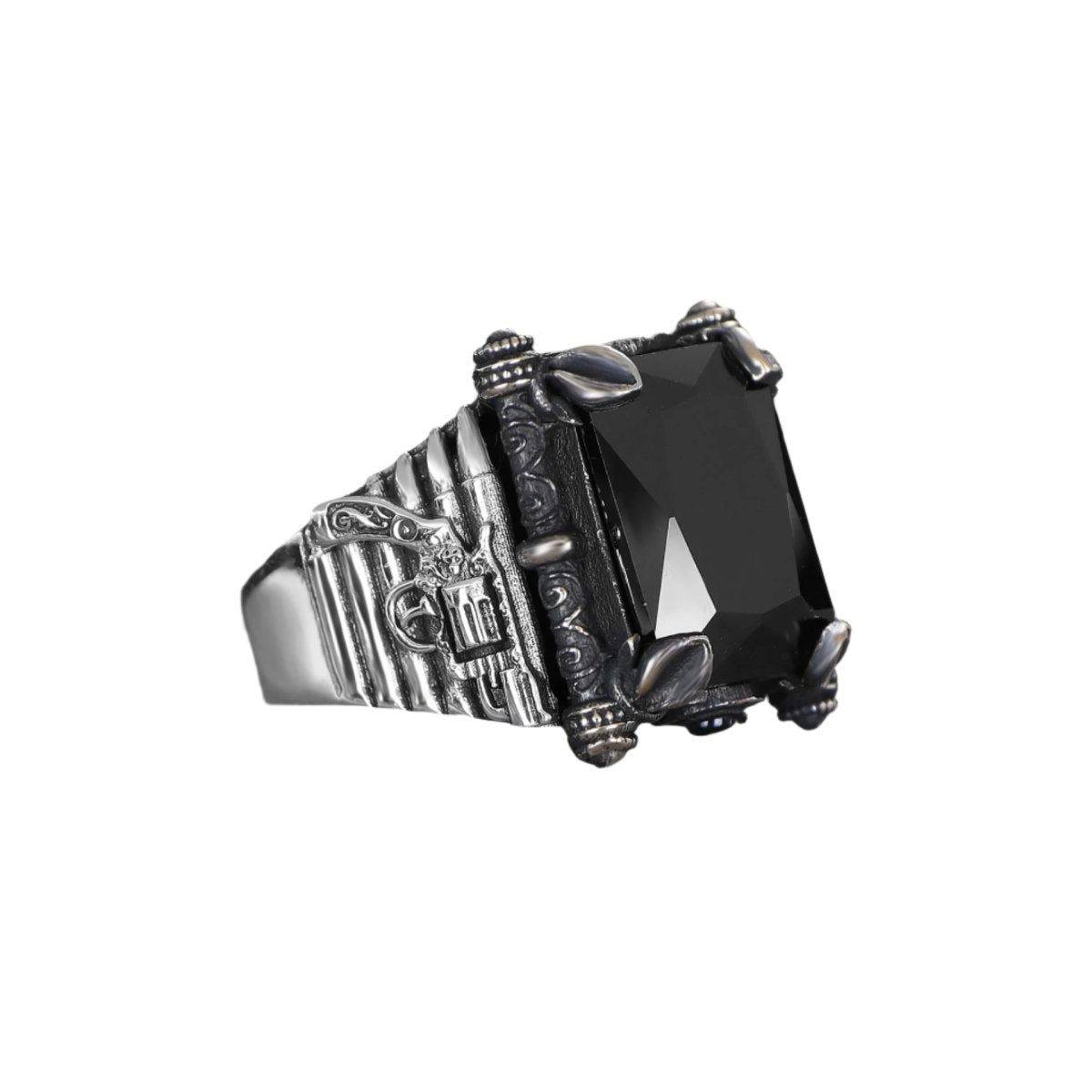 Tesbihevim | Armed Model Silver Ring with Zircon Stone for Men - TryAladdin