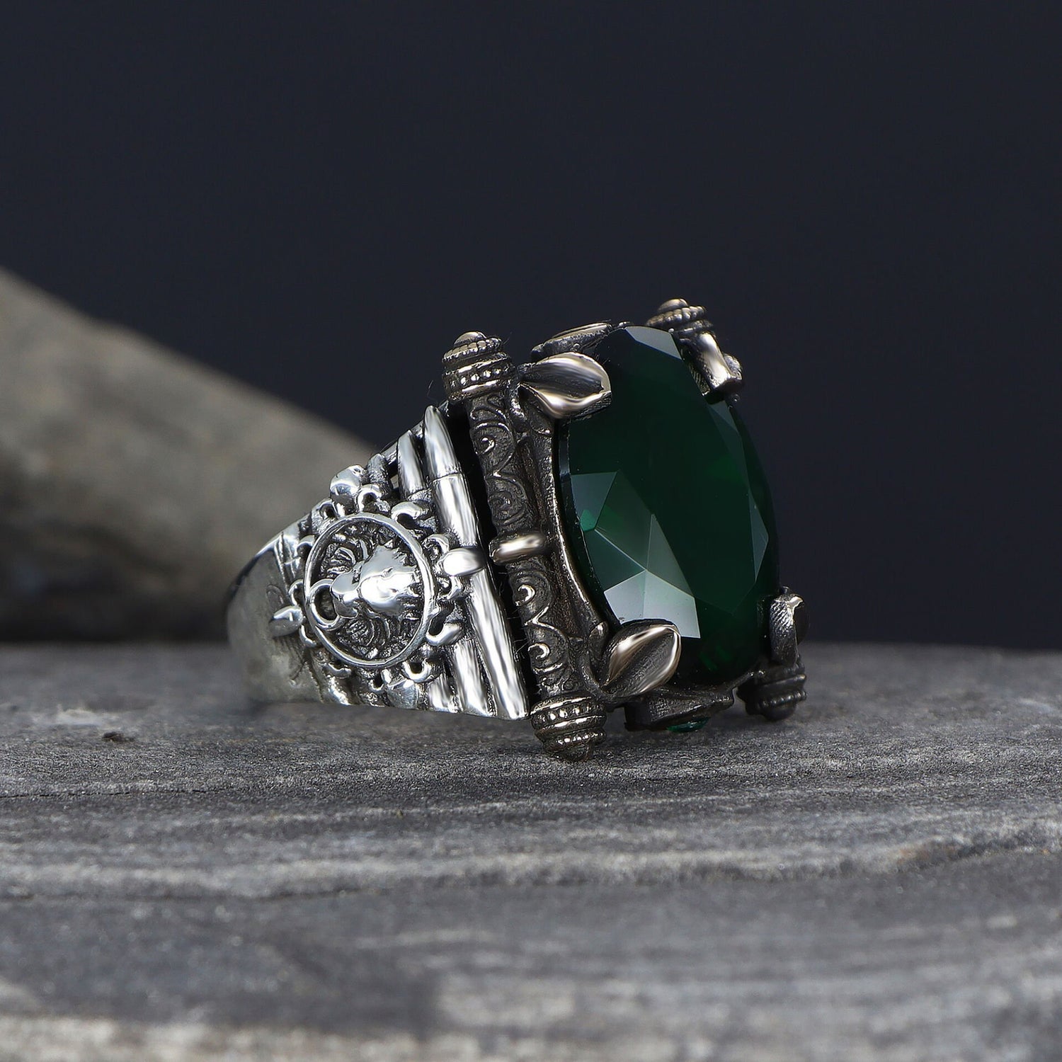 Erheben Sie Ihren Stil mit einem Herren-Silberring mit grünem Zirkonstein