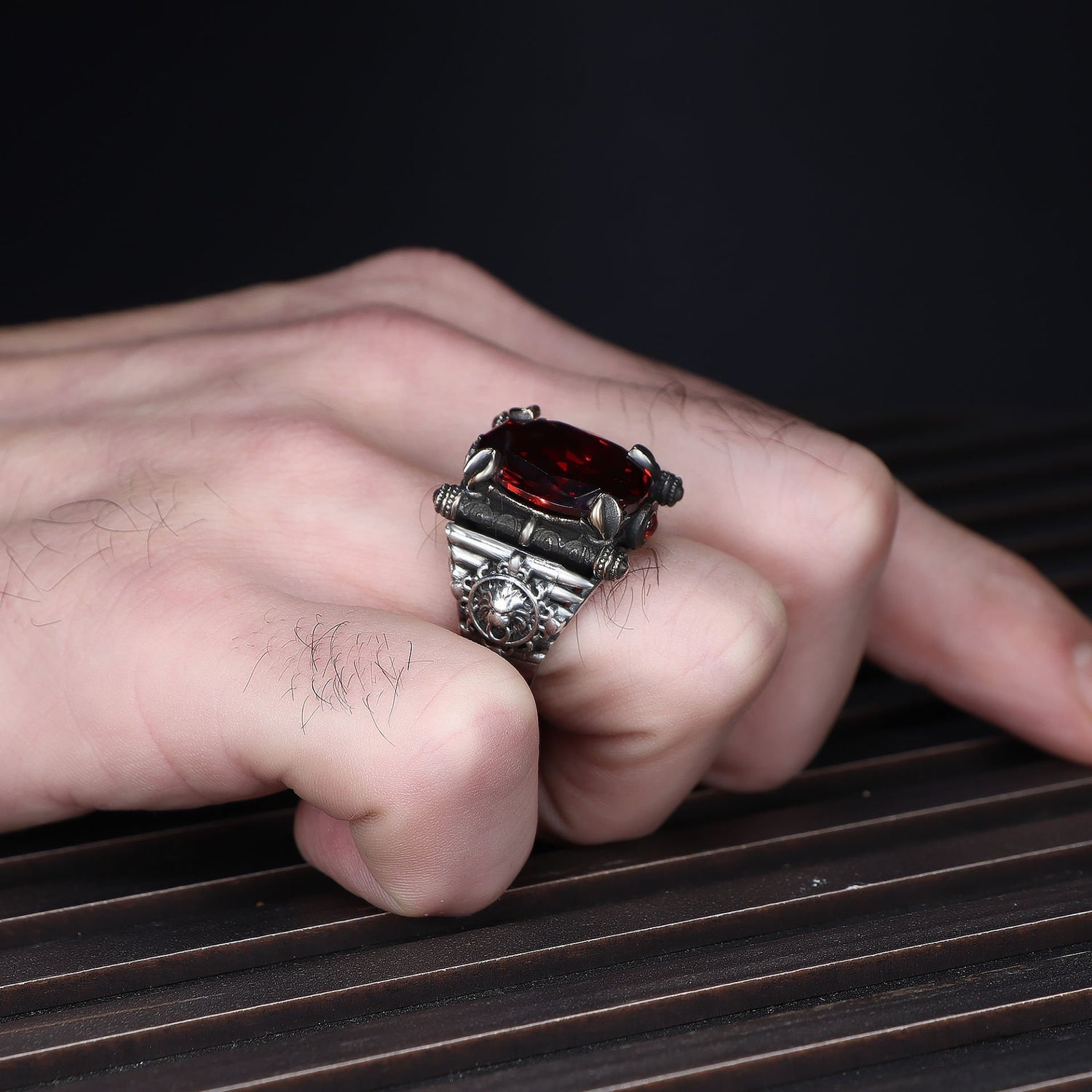 Heben Sie Ihren Look mit dem Herren-Silberring mit rotem Zirkonstein hervor
