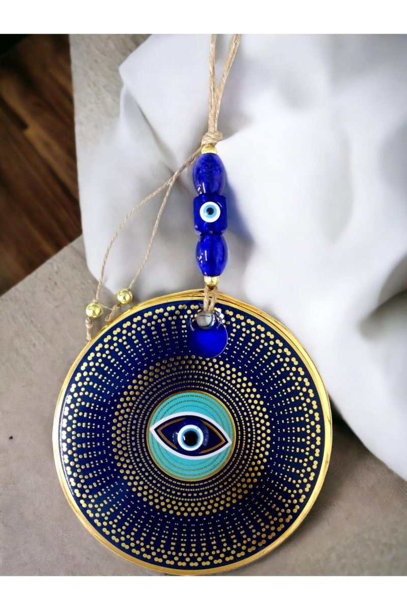 Umarmen Sie die Schönheit und kulturelle Bedeutung des Goldenen Pünktchen Nazar Glas Wandornaments. Bestellen Sie Ihres noch heute und lassen Sie es Spaß, Lachen und Schutz in Ihr Zuhause bringen!