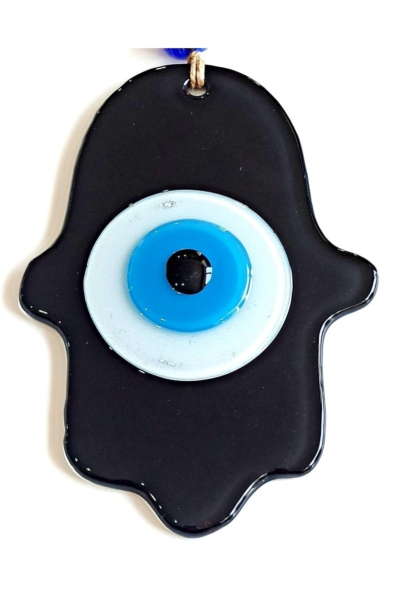 Nazar Perlen Schwarze Handform Glas Wandornament: Eine kühne Aussage von Schutz und kulturellem Stolz