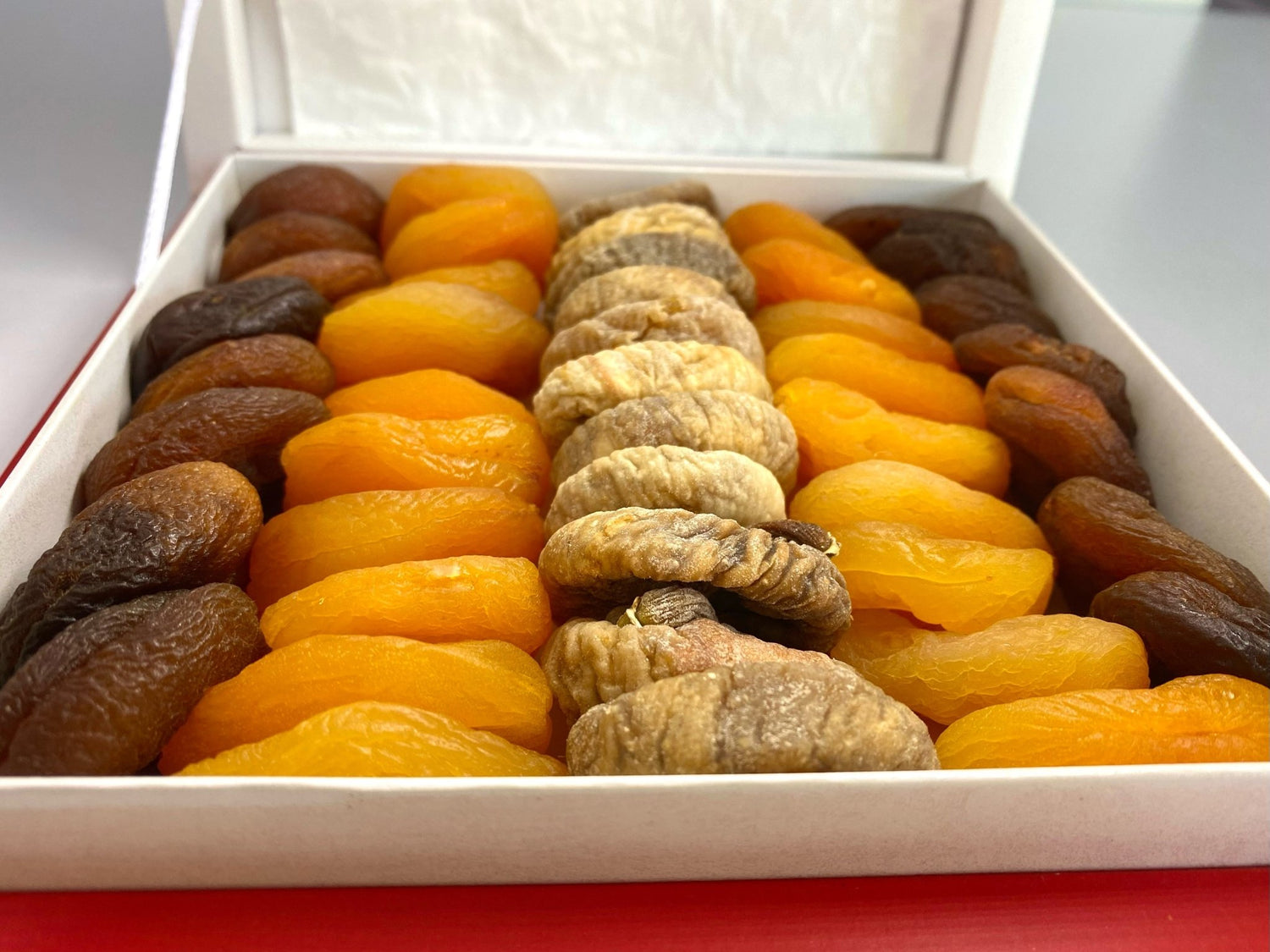 Für diejenigen, die eine gute Mischung aus Trockenfrüchten probieren möchten oder für den anspruchsvollen Obstkenner, ist die Trockenfrüchte-Mischung aus der Türkei eine ausgezeichnete Kombination der besten Früchte, die die Türkei zu bieten hat. Bekannt dafür, eines der besten Klimata der Welt für die Produktion von Feigen und Aprikosen zu sein, ist diese gemischte Box eine gute Wahl für diejenigen, die hochwertige Trockenfrüchte suchen. Jede Box enthält eine Kombination aus Feigen, dunklen Aprikosen und hellen Aprikosen.