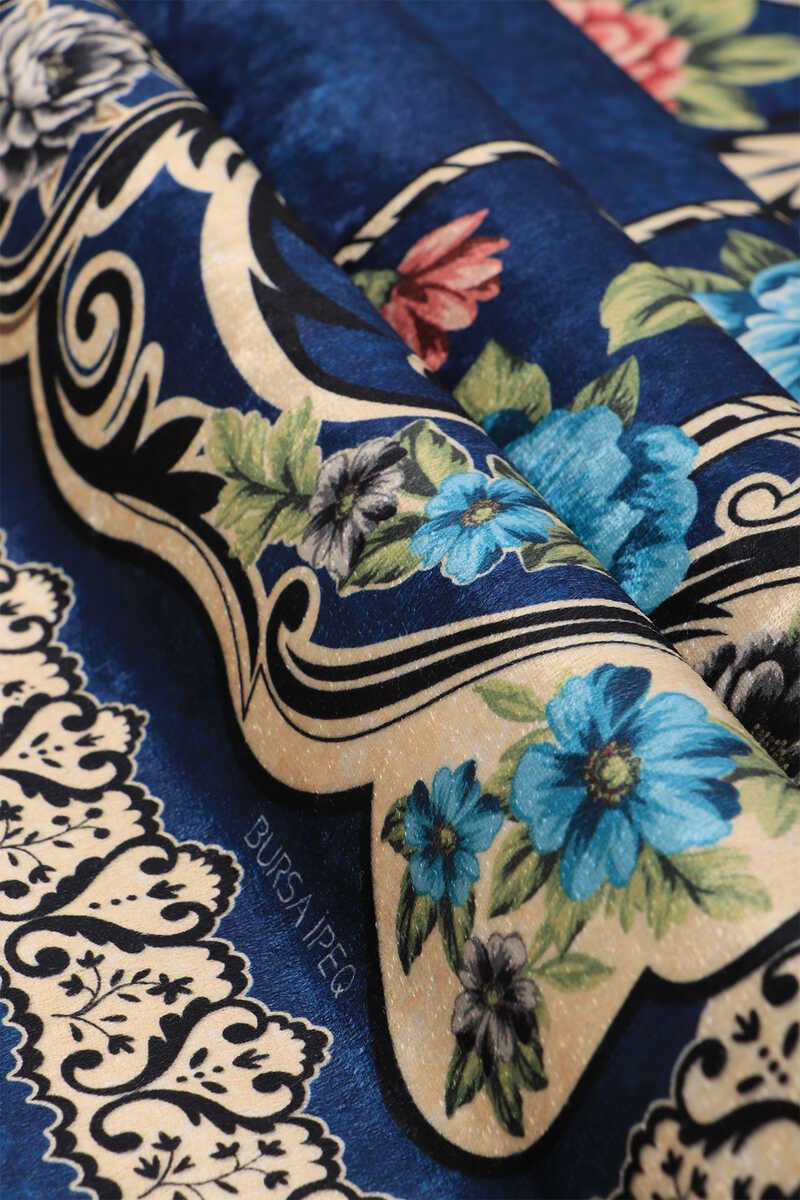 Verbessern Sie Ihre Wohnkultur mit der Schönheit von Bursa Ipek – Bestellen Sie jetzt Ihren navyblauen Samt-Teppichgebetsteppich!