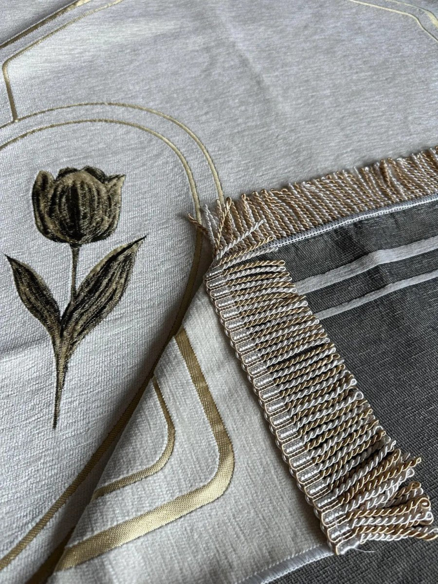 Erleben Sie Frieden und Ruhe mit diesem kunstvoll gestalteten Gebetsteppich-Set für Paare, das elegante Rosenstickerei und eine weiche Chenille-Oberfläche bietet.