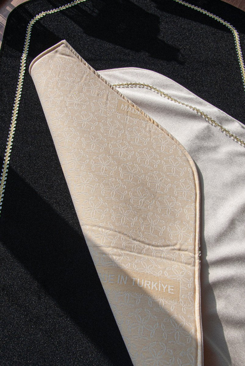 Drücken Sie Ihre Hingabe sowohl an Ihren Ehepartner als auch an Gott durch die weiche Textur dieses Samteppichs aus, der Frieden und Leichtigkeit während Ihrer Gebete bietet.