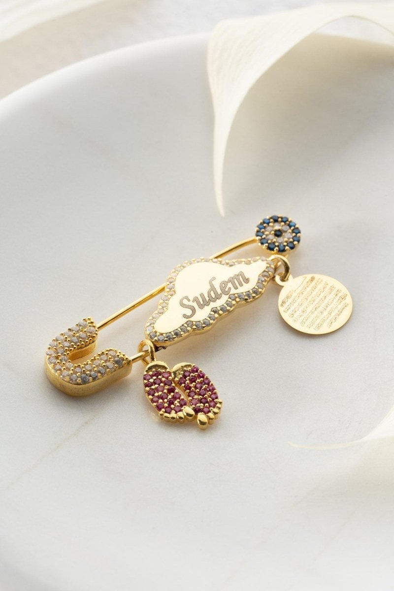Personalisierte Cloud-Modell Pinke Füße Islamisch Motivierte Ayatal Kursi Baby-Anstecknadel mit Namen