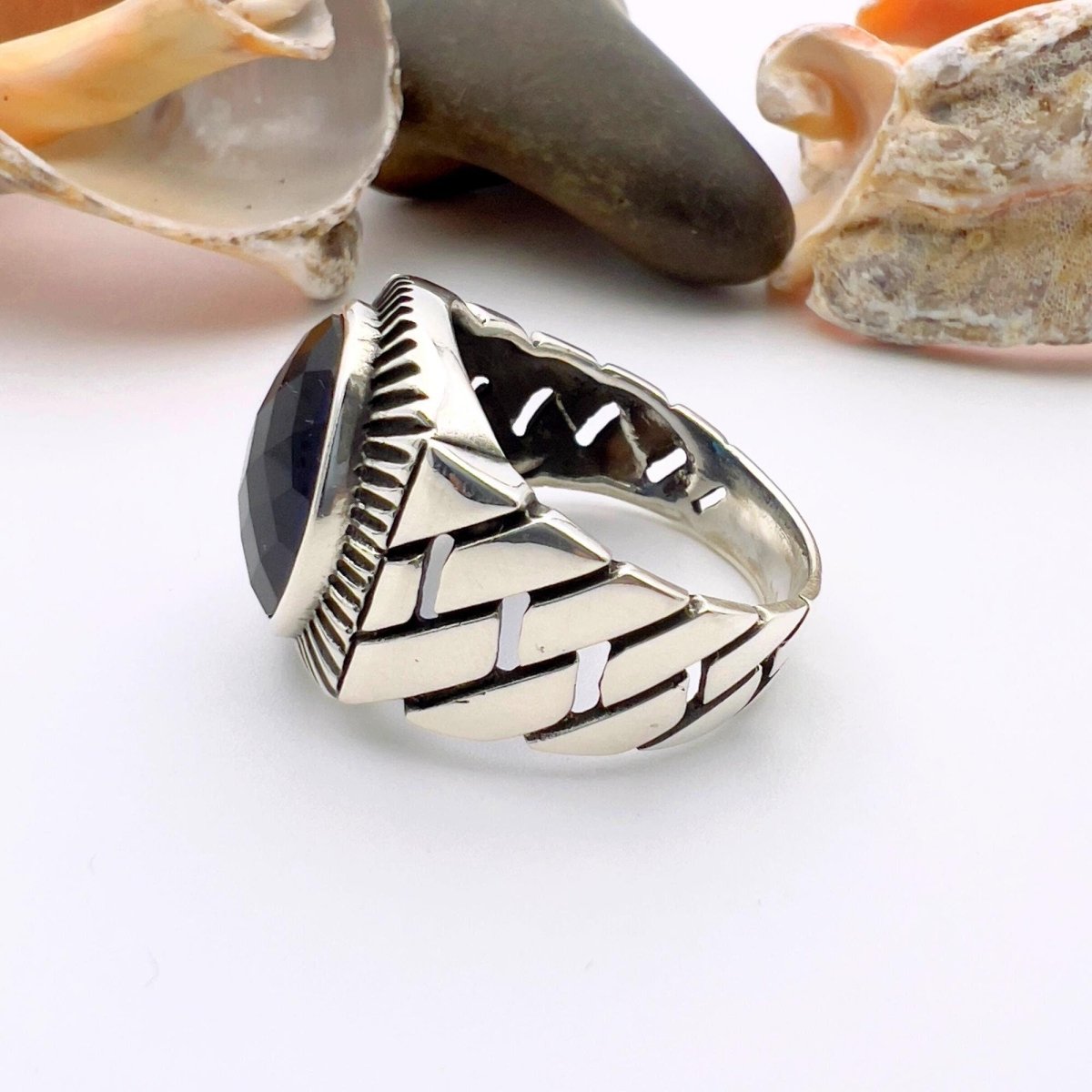 • Türkischer handgefertigter Herrenring mit einem blauen ovalen Saphirstein