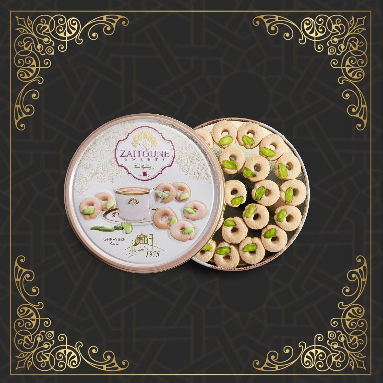 Graybah, auch bekannt als Qurabiya oder Ghorayeba, ist ein beliebter traditioneller Keks im Nahen Osten und Nordafrika. Die Zutaten werden vermischt, um einen glatten Teig zu bilden, der zu kleinen Kugeln oder Hörnchen geformt wird, bevor er gebacken wird. Die Kekse sind zart und krümelig, mit einer buttrigen Textur, die im Mund schmilzt. Graybah wird oft zu besonderen Anlässen und Feiertagen serviert und ist eine beliebte Leckerei in vielen Ländern der Region.