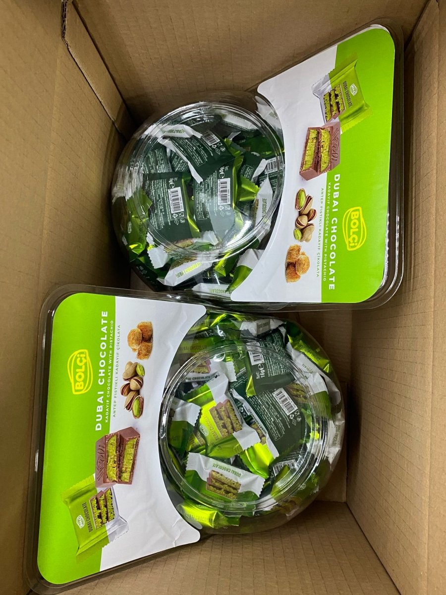 Stocken Sie Ihr Geschäft mit der unwiderstehlichen Antep Pistazie & Kadayif Dubai Schokoladentafel (16g) auf, einer Premium-Leckerei, die reiche Schokolade, knusprige Antep-Pistazien und knusprigen Kadayif für einen einzigartigen und köstlichen Geschmack kombiniert. Ihre kompakte Größe und luxuriöse Verpackung machen sie zu einem idealen Impulskauf für die Theke für Kunden, die nach einer schnellen, aber dennoch verwöhnenden Leckerei suchen.