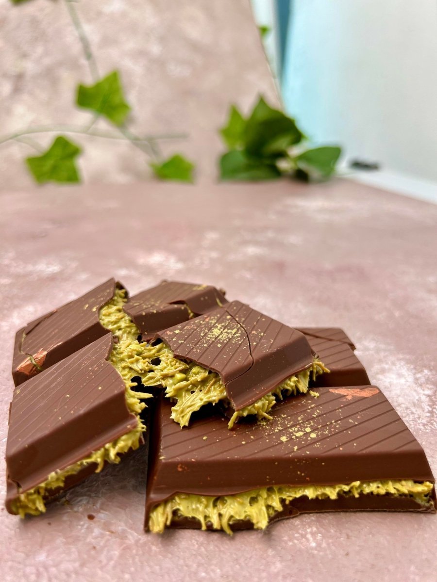 Handgemachte Dubai Schokoladentafel - Belgische Schokolade mit Pistazien & geröstetem Kadayif