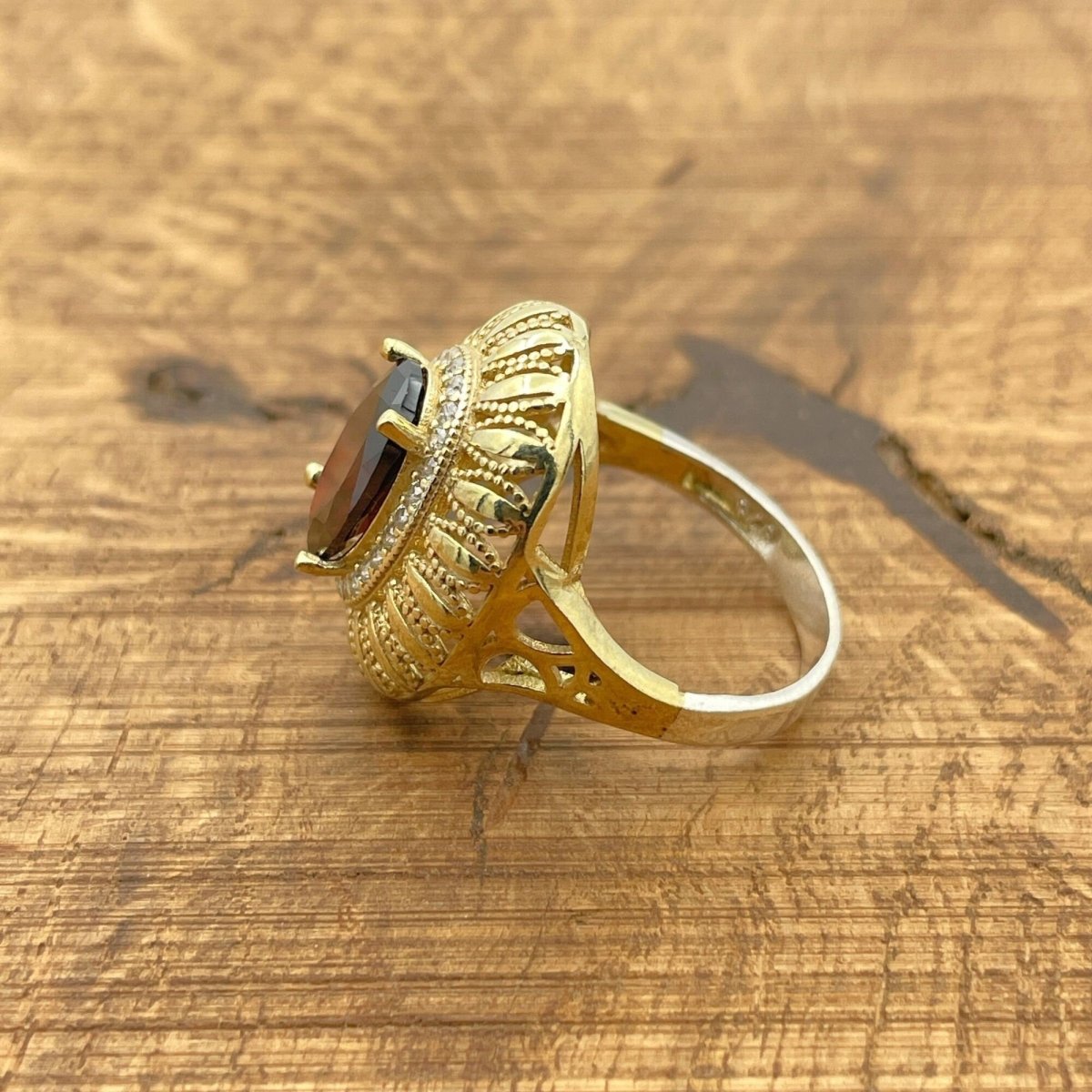 Fügen Sie Ihrem Outfit mit diesem Damenring aus dunklem Rubin und Silber einen Hauch von Eleganz und Charme hinzu. Dieser handgefertigte Ring mit authentischem Vintage-Charme besteht aus 925er Sterlingsilber und garantiert hohe Qualität und Langlebigkeit. Der dunkelrote Rubinstein verleiht jedem Ensemble einen Farbtupfer und Raffinesse.
