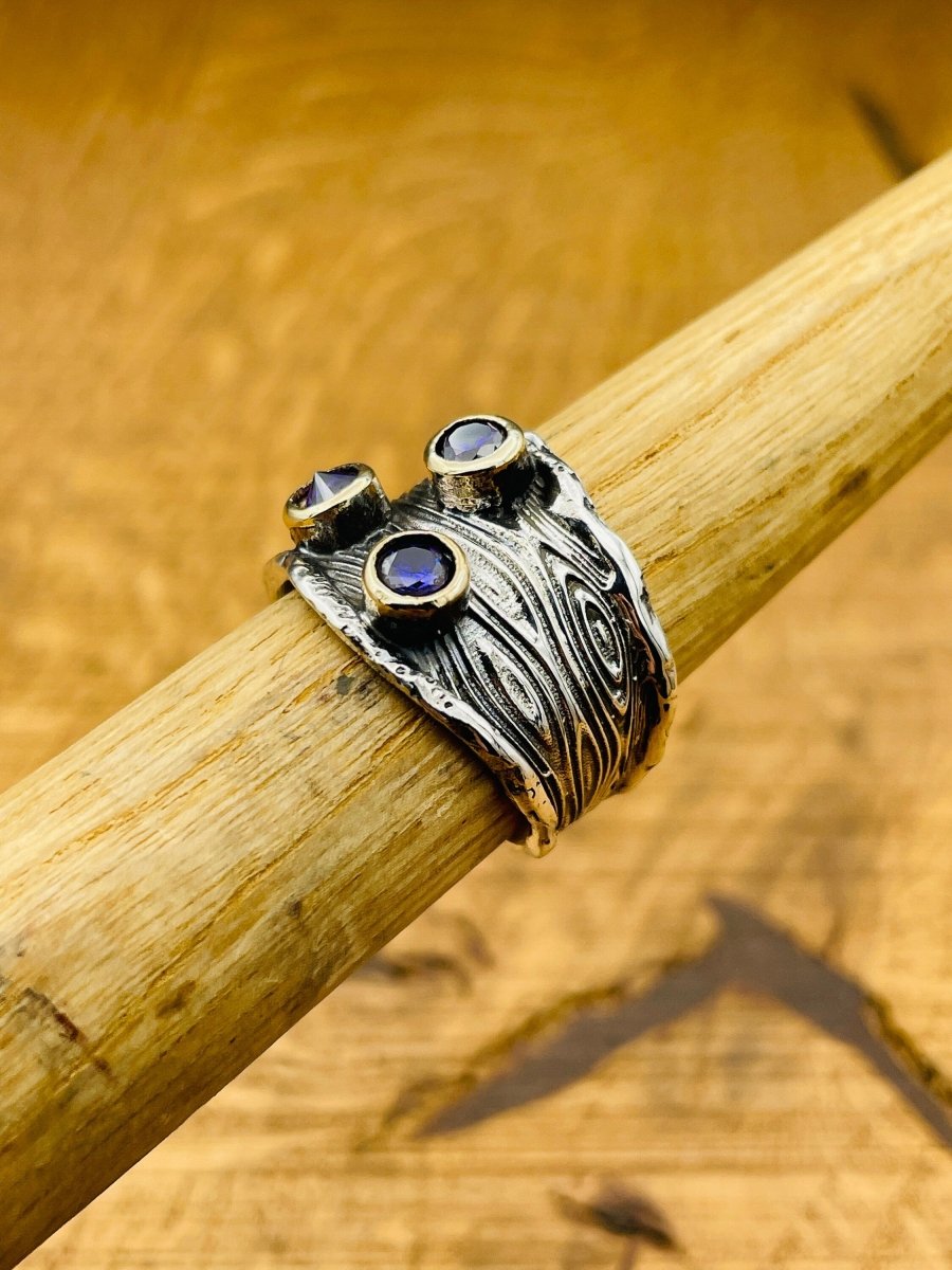- Exquisiter türkischer handgefertigter Ring mit lila Amethyststeinen