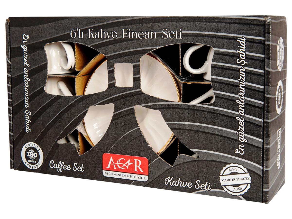 Acar | Porzellan Türkisches Kaffeegeschirr für sechs - Charisma - Gold
