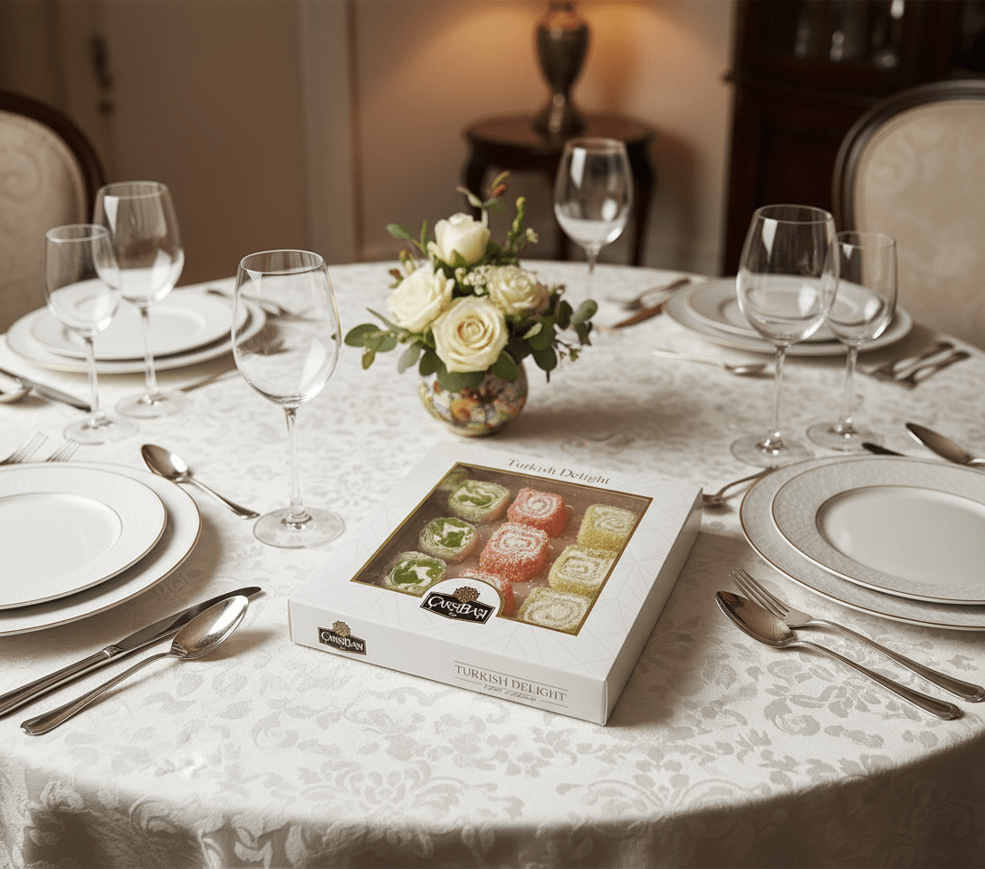 - Einzigartiger gerollter 'Sarma'-Stil: Der moderne gerollte Stil mit cremiger Füllung bietet eine einzigartige, raffinierte Textur, die ihn von Standard-Lokum unterscheidet.