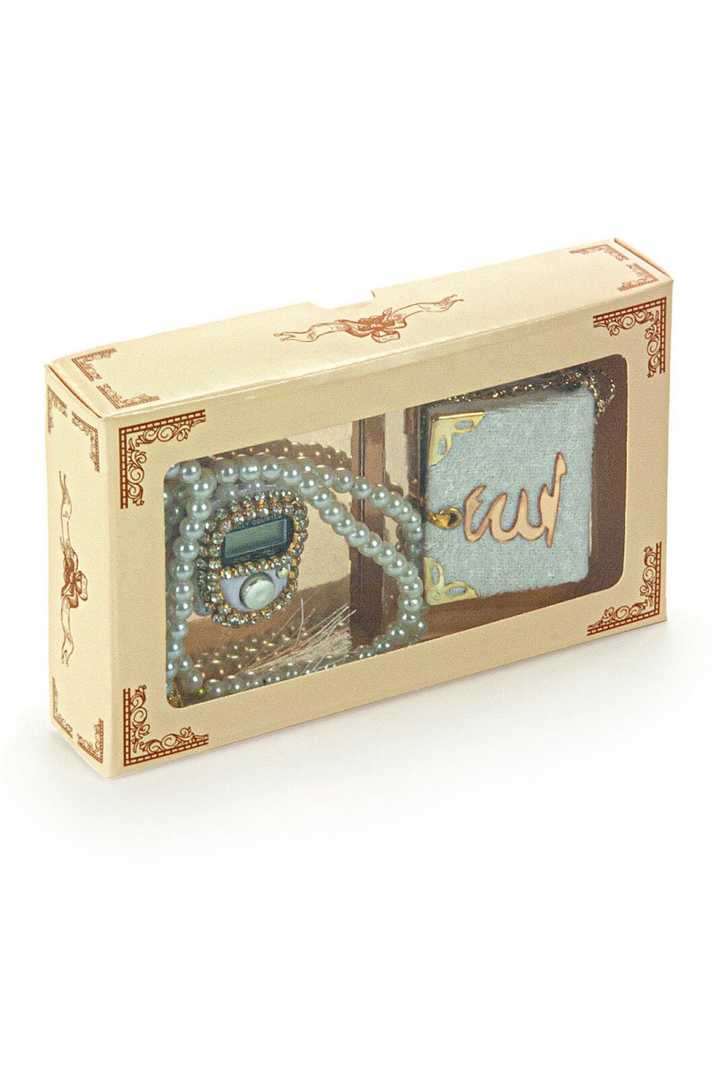 Mini-Velvet-Quran, Kristallstein-gebetperlen und steinverziertes Dhikrmatic-Geschenkset, Weiß